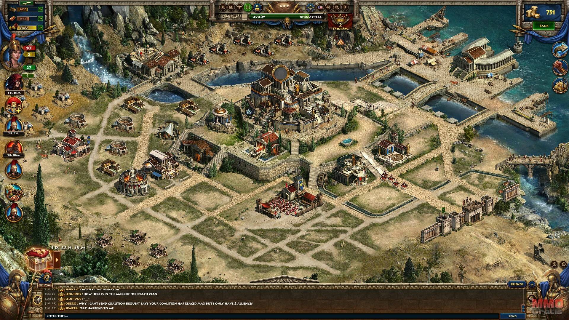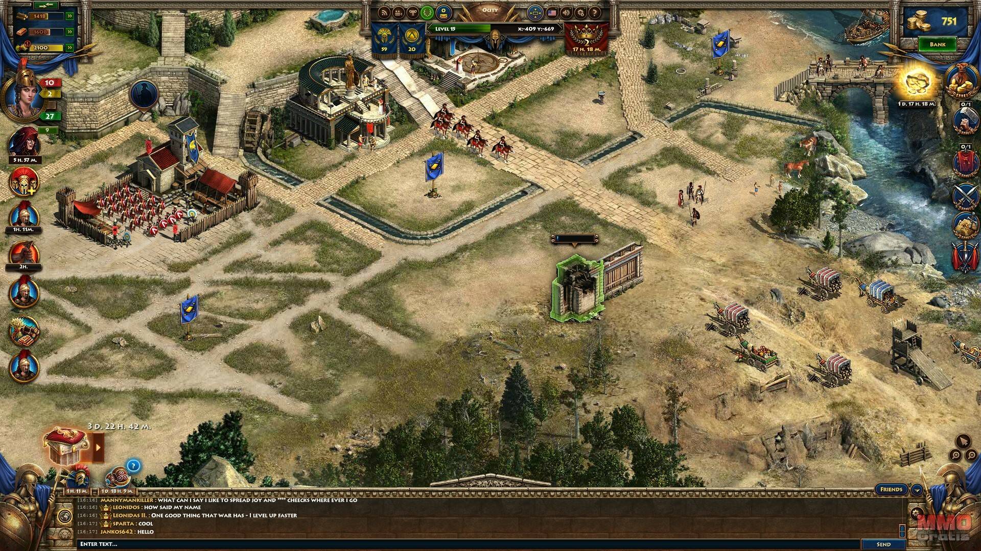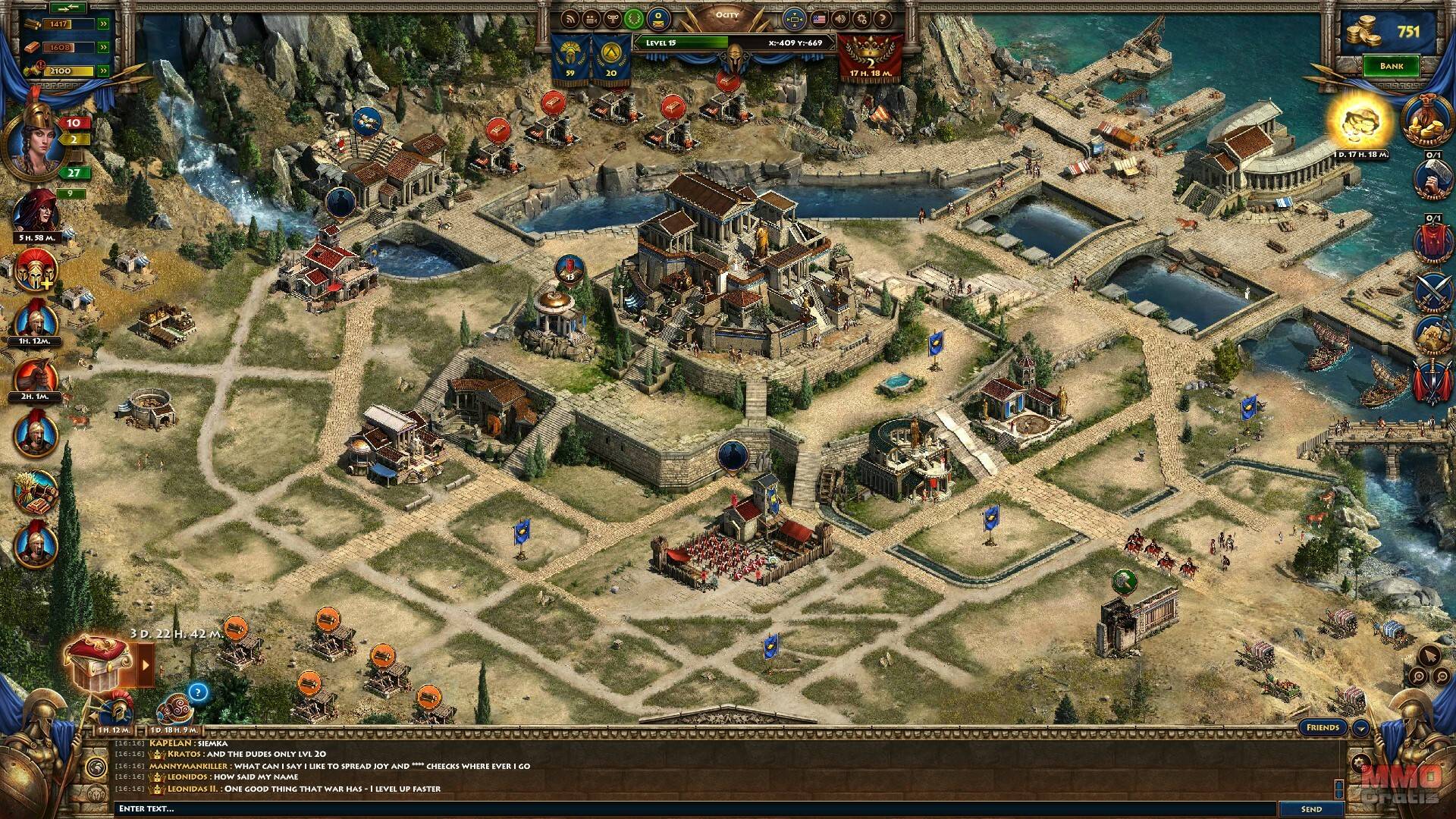 Las mecánicas de juego son las típicas que podrías esperar de un MMO de este tipo. Necesitas conseguir recursos (en este caso bronce, madera y trigo), construir edificios con distintas funciones, como minas, granjas o aserraderos, que son los encargados de producir recursos, campamentos de infantería, donde puedes entrenar a la soldadesca, establos donde puedes entrenar unidades a caballo, o el oráculo que cada día puede encontrar nuevos campamentos que puedes proteger o atacar. La producción de recursos y la construcción de edificios, es relativamente rápida, al menos en las fases iniciales del juego, y esto ayuda a mantener el juego fresco y entretenido desde el principio. Las luchas también comienzan en un estadio muy inicial, y rápidamente te encontrarás saqueando y conquistando ciudades rivales o protegiéndote de los ataques de tus enemigos. Creemos que este es un punto destacado del juego, ya que Plarium ha conseguido darle un buen ritmo al juego, en el que constantemente tienes la sensación de estar haciendo cosas, sin tener que esperar demasiado, lo cual es habitual en títulos de corte similar. Además el juego enseña rápidamente la importancia de las características sociales del juego, ya que para sobrevivir es vital interaccionar con otros jugadores, ya sea ayudándoles, comerciando o uniéndote a alianzas de jugadores para conseguir protección y leales compañeros.