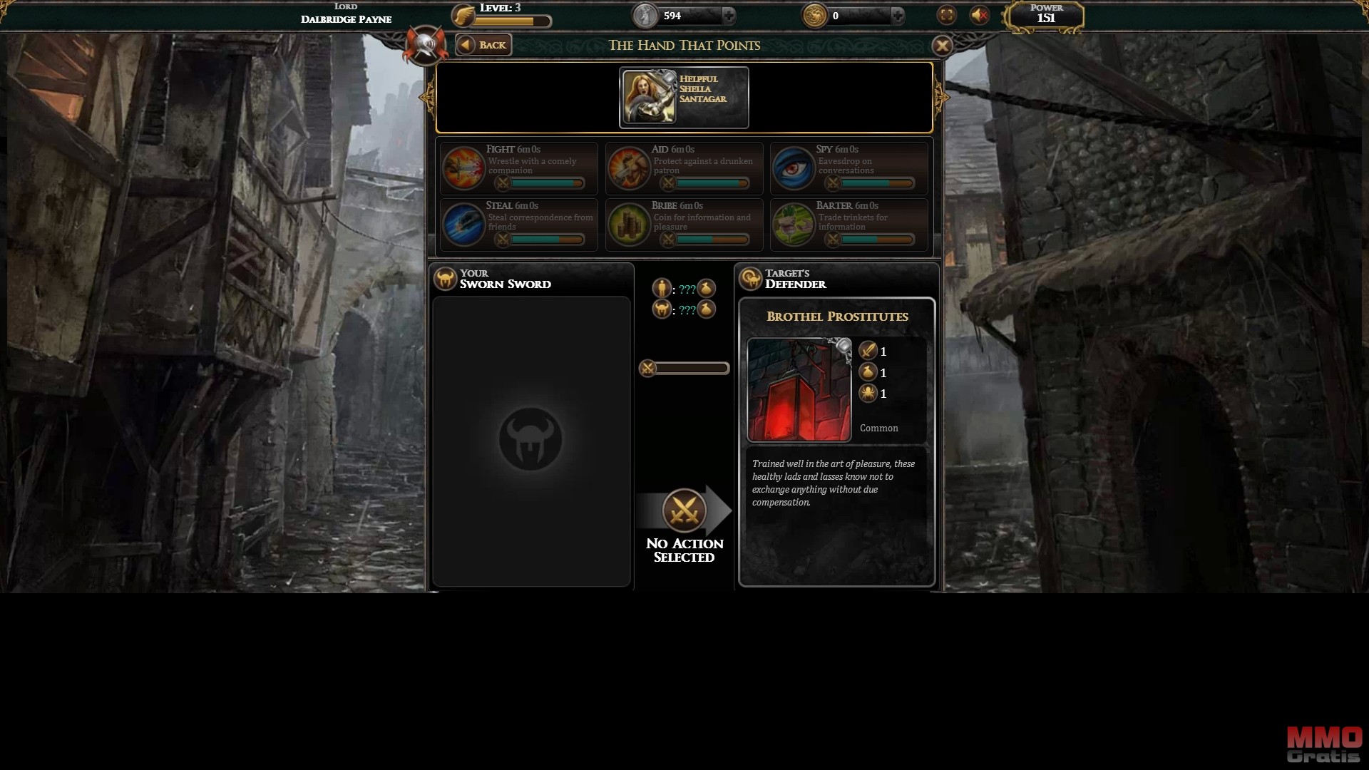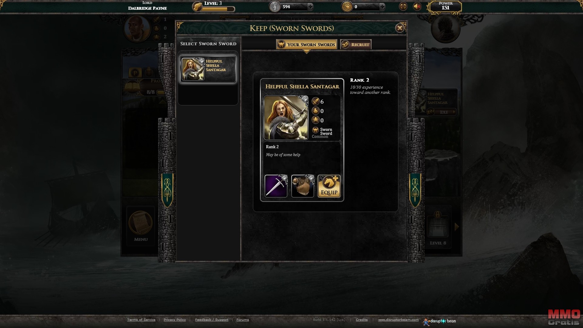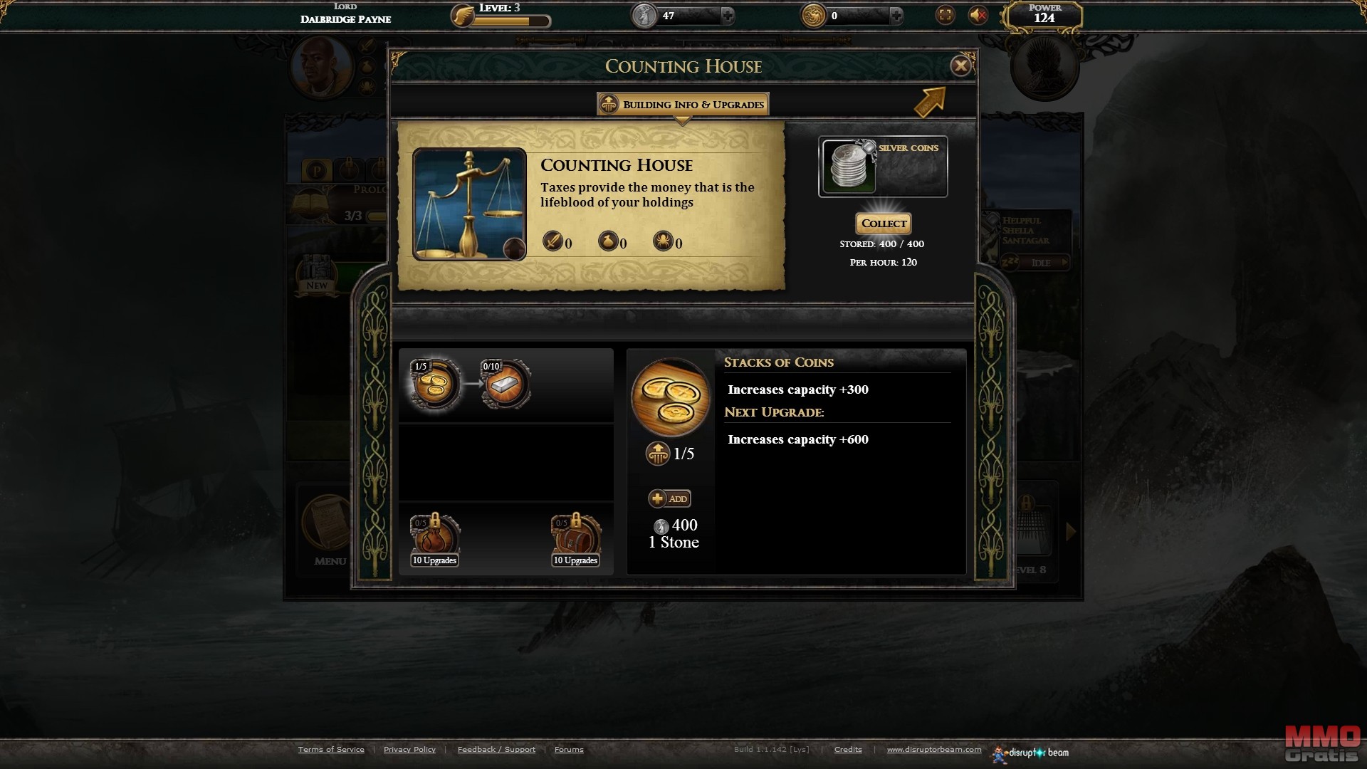 En el juego nuestro principal trabajo es conseguir recursos, siendo el mas importante plata, que nos permitirá comprar distintos edificios que iremos desbloqueando al subir de nivel, comprar el servicio de espadas juramentadas (que también pueden conseguirse con oro, la moneda premium del juego), y de equipo que mejore sus habilidades. Cada edificio produce cosas distintas, por ejemplo el herrero fabrica armas y armaduras, el ayuntamiento produce recursos como trigo, hierro, peces y caballos, que pueden usarse en otros edificios para crear otros objetos.