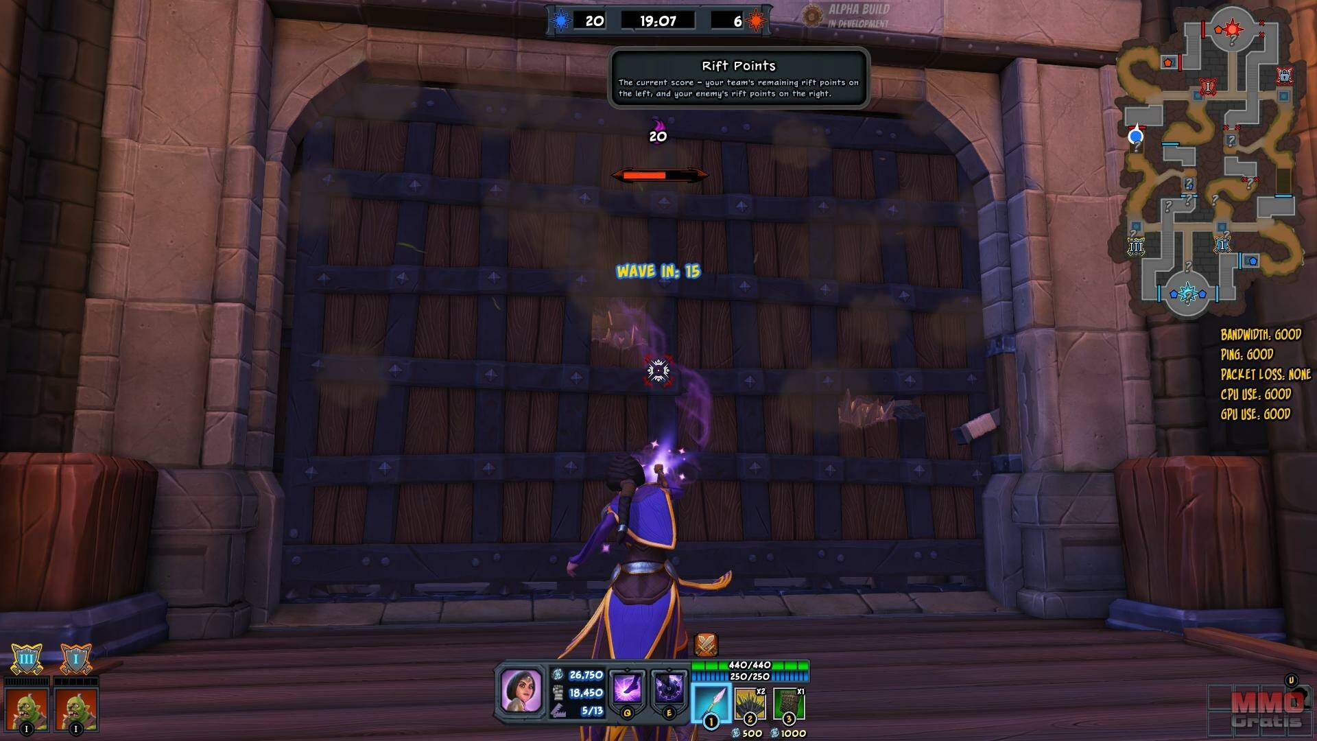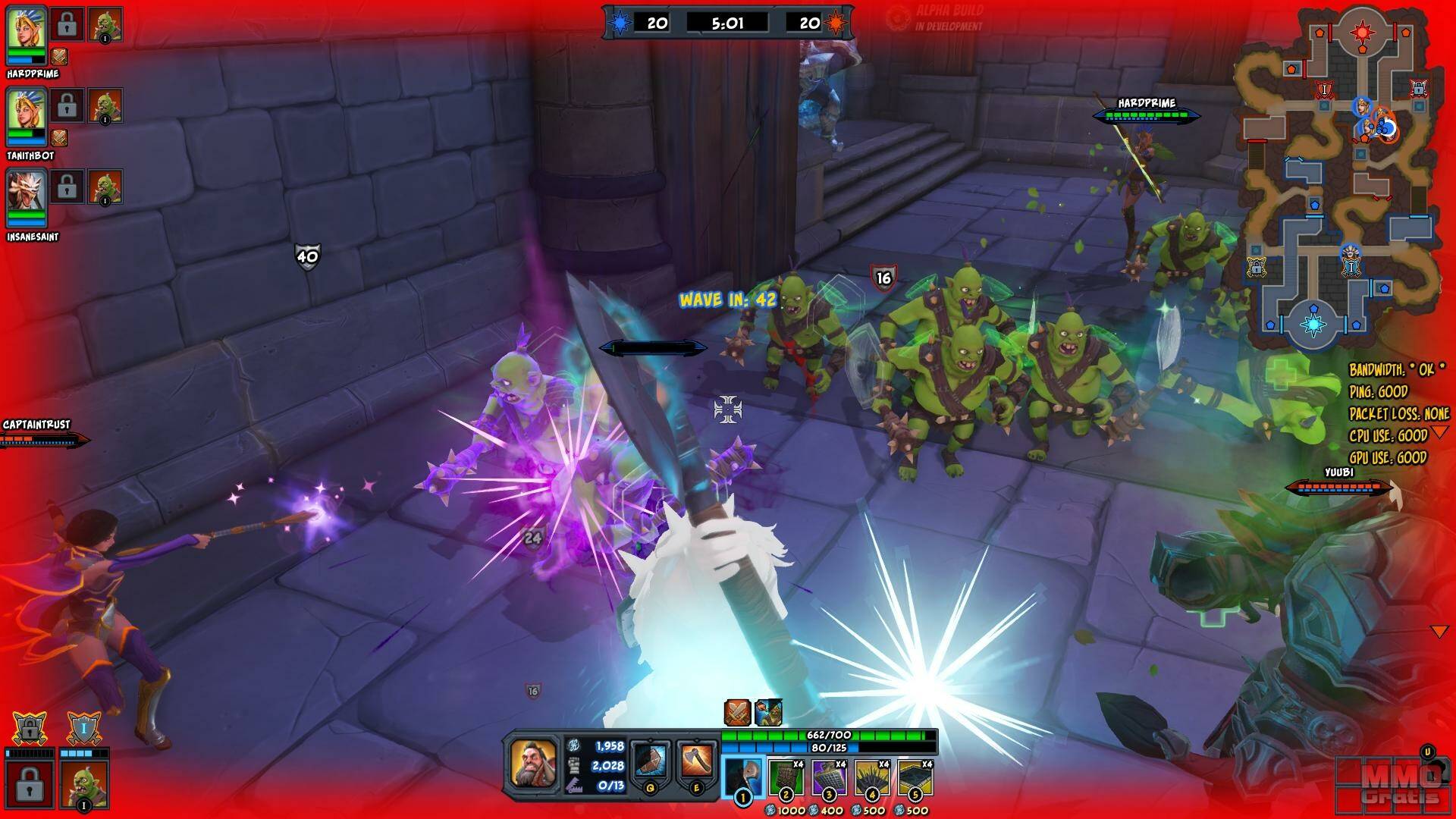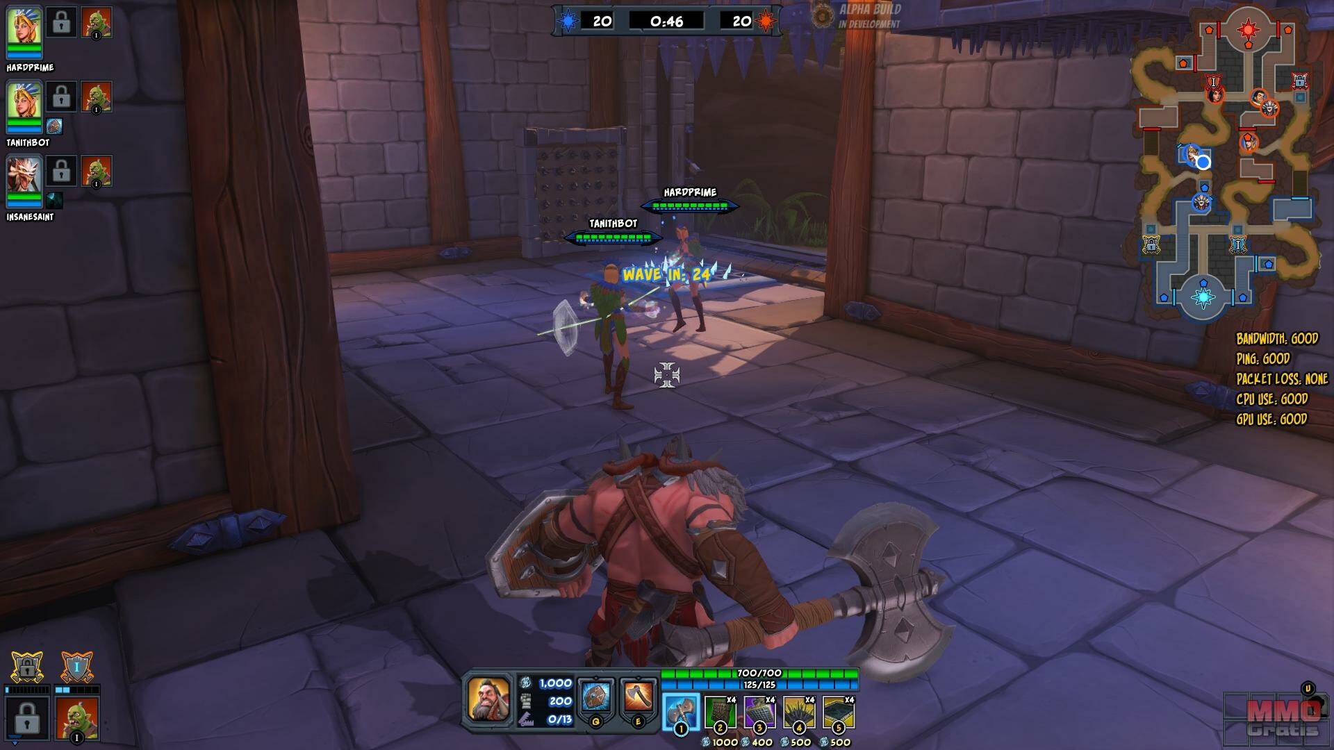 De las clases disponibles en la alpha probamos al Smolder, una especie de mago de fuego, al que tuvimos acceso desde el principio. El juego cuenta con varias clases distintas, tanto orientadas al combate a distancia como al cuerpo a cuerpo. Los jugadores atacan usando los botones del ratón y con las teclas Q y E usan sus ataques especiales, mientras que con las teclas numéricas podrás poner trampas. Tuvimos la oportunidad de probar una partida PvP, y pudimos ver que solo se puede escoger cada héroe una vez por bando (con la excepción de que si hay un bot en tu equipo, el cual podrá ser cualquier personaje).