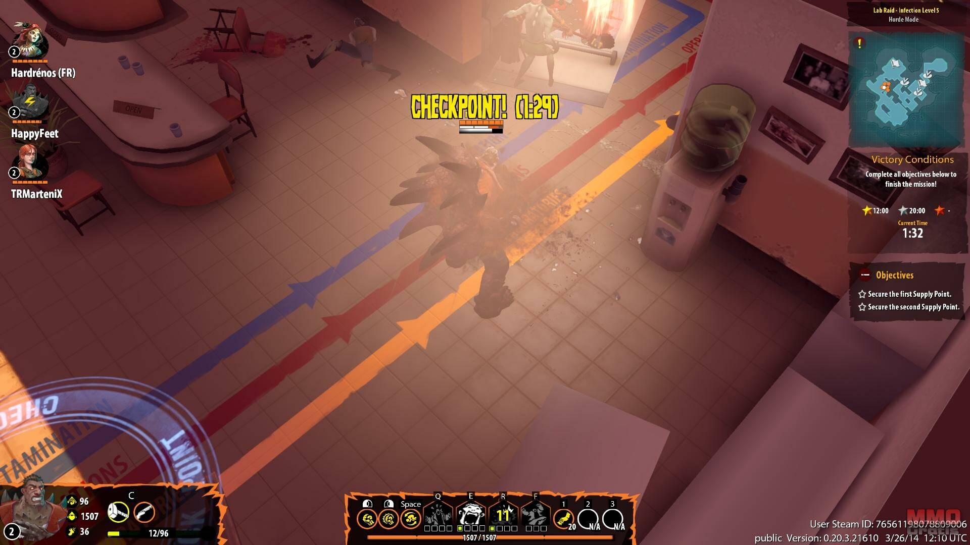 En el modo Horde también tendrás que capturas puntos de control, con la diferencia de que tu equipo de 4 jugadores se enfrentará a oleadas de enemigos cada vez más poderosos, hasta tener que enfrentarte a un peligroso jefe. Nosotros nos enfrentamos a un jefe que escupía bilis ácida, y lo único que podíamos hacer para evitar que nos fuese haciendo daño constantemente era meternos bajo una cascada y limpiarnos la pringue, esta habilidad, junto a otra que te convertía en un capullo de babas, del que sólo puedes escapar si pasa un tiempo o si tus compañeros lo rompen, lo convertía en un enemigo bastante peligroso, ya que si el equipo no está coordinado un personaje atrapado en un capullo puede morir rápidamente por culpa de la bilis.
