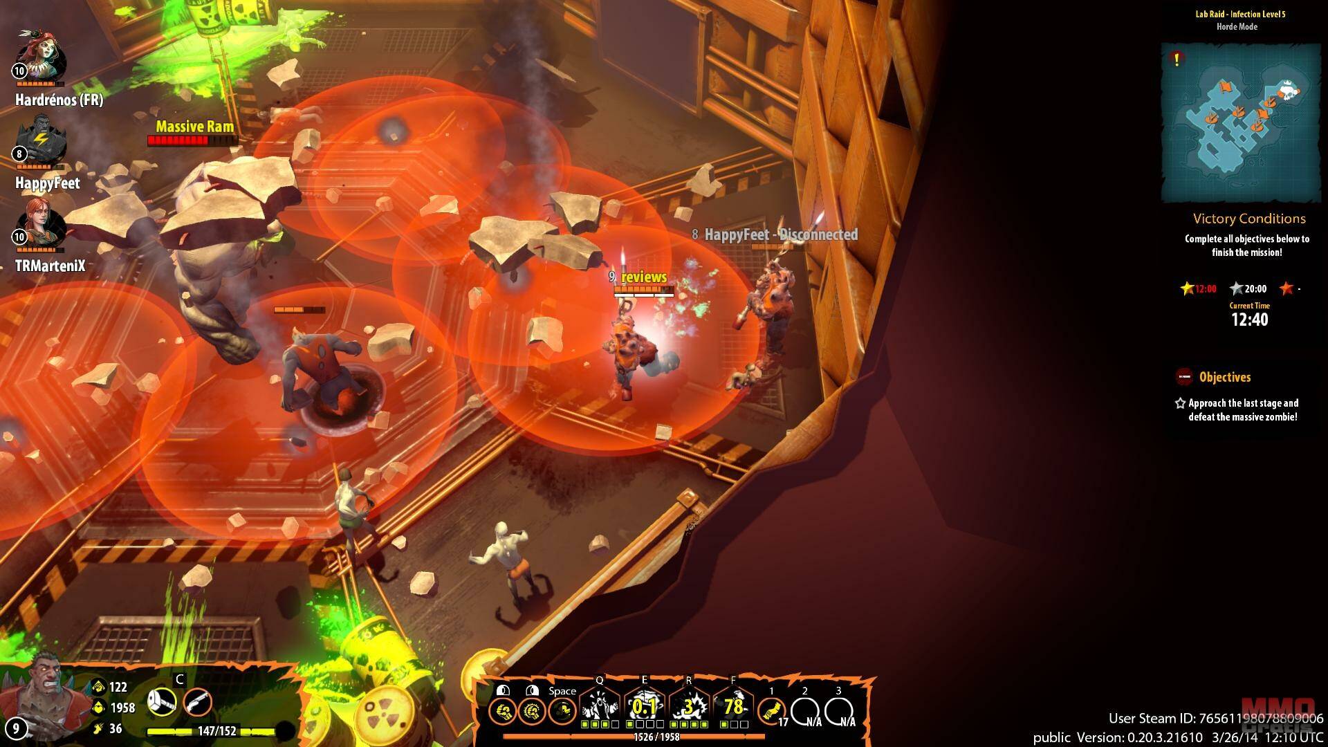 Tras descargar el cliente del juego (cosa que puede hacerse vía Steam), lo primero que hacemos es completar un sencillo tutorial/prólogo en el que aprenderás a moverte y a usar las habilidades de tu personaje. En el juego te mueves usando las teclas WASD, y usas los botones de tu ratón para atacar (botón izquierdo para ejecutar un ataque estándar y botón derecho para ejecutar un ataque potenciado); también cuentas con varias habilidades especiales asignadas a las teclas QERF, que puedes subir de nivel a medida que consigas experiencia, cómo se puede ver en la mayoría de MOBAs (que aunque los desarrolladores defienden que el juego no es un MOBA, esencialmente si lo es, aunque si es cierto que cuenta con varias características únicas).