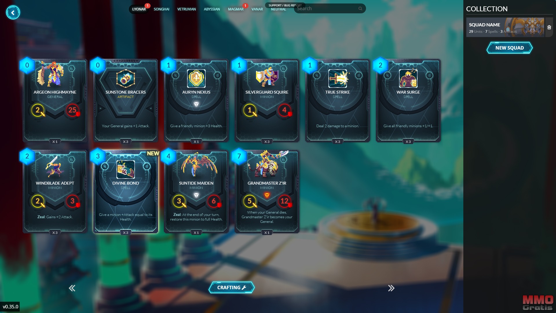 El juego cuenta actualmente con seis facciones distintas, aunque no estás obligado a escoger una, lo cual te permite jugar con cualquiera de ellas. El principal modo de juego son las batallas PvP puntuadas, en las que iremos subiendo o bajando por las clasificaciones dependiendo de nuestros resultados de combate. El otro modo competitivo del juego es el Guantelete, que es parecido a las arenas de Hearthstone; en este modo de juego tenemos tres vidas, y tenemos que conseguir la mayor cantidad de victorias (el máximo son nueve) para conseguir mejores recompensas. El ultimo modo, es el modo Sandbox; este modo es muy interesante ya que controlamos a los dos equipos (o podemos dejar que uno sea controlado por la IA) lo cual nos permite crear estrategias, tácticas y mazos sin la presión de tener que ganar.