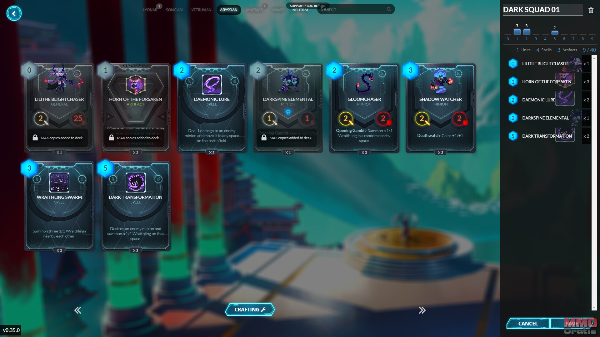 El combate se asemeja superficialmente a un JCC, con turnos, cartas (que conseguimos en paquetes de cartas llamados Soul Orbs que contienen 5 cartas de las cuales una al menos es rara) de 6 facciones distintas (también hay cartas neutral) que pueden ser esbirros, hechizos y artefactos. Cuando comenzamos una partida cogeremos tres cartas aleatorias de nuestro mazo (aunque podemos hacer Mulligan y dejar las tres cartas para coger otras dos), y una pequeña reserva de maná que podremos usar para invocar cartas (cada carta tiene distintos costes de maná). A cada turno que pase nuestra reserva de maná crecerá lo cual nos permite invocar cartas más caras y poderosas, o invocar varias cartas débiles a la vez. Hasta ahora se parece mucho a JCC ¿Verdad?, pues bien, a partir de aquí las cosas empiezan a cambiar…
