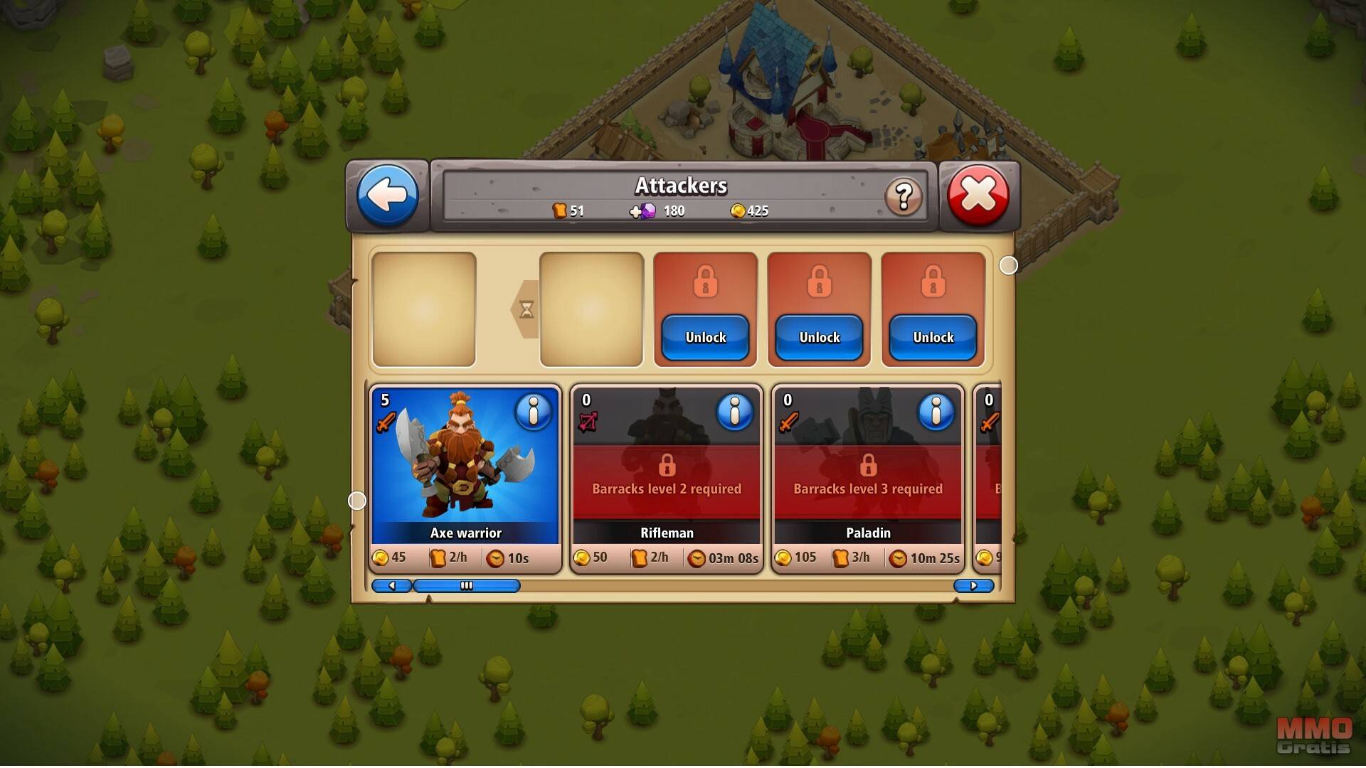 En el juego hay una enorme variedad de edificios y unidades militares, y cada uno de ellos tiene un coste de recursos distinto. En el juego hay cuatro recursos distintos: Oro, madera, piedra y comida, la madera y la piedra se usa principalmente para construir y mejorar edificios, las unidades militares necesitan comida para estar preparadas para la guerra, y el oro se usa en prácticamente todas las acciones del juego. Los jugadores también tienen acceso a un quinto recurso Premium, las gemas que se consiguen en pequeñas cantidades al subir de nivel, o comprándolas con dinero real, las gemas sirven para acelerar los tiempos de construcción, comprar objetos únicos o entrenar instantáneamente a tus tropas.