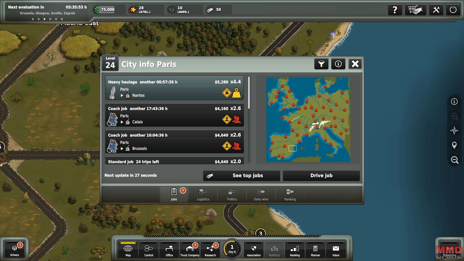 Al crear a nuestro personaje, tenemos que escoger también la ciudad donde estableceremos nuestra compañía, por lo que rebuscamos por el mapa de Europa y escogimos ser de Barcelona, una ciudad bulliciosa en la que había bastantes jugadores. Como los desarrolladores son alemanes, y tiene mucho apoyo de la comunidad alemana, ha creado un detallado y realista mapa de Alemania donde los jugadores pueden ambientar sus partidas.