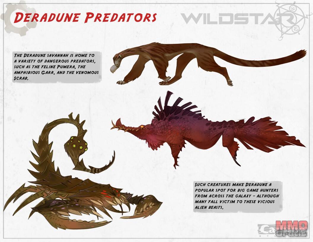 WildStar transcurre en el planeta Nexus, un misterioso mundo planeta natal de la raza llamada los Eldan que fué abandonado, pero en el que dejaron abandonados muchos tesoros y tecnologías que los jugadores podrán descubrir y adquirir. Una de sus zonas es Deradune, un lugar repleto de vida salvaje que será la zona de comienzo de una de las razas del juego.