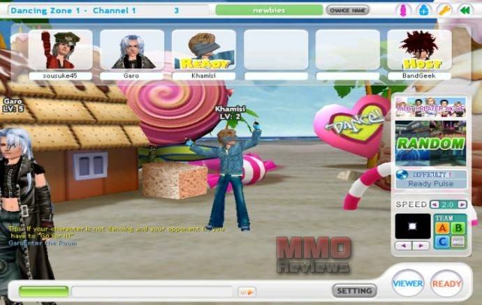 Los jugadores comienzan en la ventana de selección de canal, donde pueden escoger el nivel que quieren (principiante, avanzado) y entre una variedad de clubs. Una vez que entres puedes ver quien está conectado y charlar con otros jugadores. En el club habrá varias salas donde bailan los jugadores, iniciadas por ellos mismos, donde se escoge el modo de baile (chicos contra chicas, multijugador, amantes, etc.), el ambiente, la música y la velocidad.