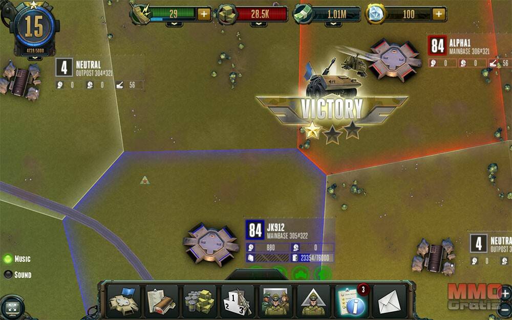 Los jugadores no podrán conquistar todo el mapa en solitario, y por ello tendrán que formar alianzas, lo que permitirá que puedan conquistar sectores enteros del mapa del juego, e incluso con suficiente poder todo el mundo! Los jugadores no solo podrán atacar a los territorios adyacentes, si no que podrán combatir contra cualquier territorio del mapa, con la limitación de que invadir áreas muy lejanas tiene un coste de combustible y raciones muy alto. Aún así permite que puedan tomar zonas clave que estén alejadas, o aprovechen situaciones favorables para conquistar zonas desprotegidas.
