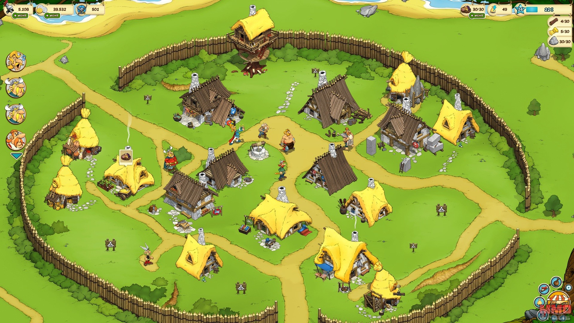 En primer lugar que transcurre en el mundo de Asterix el Galo, donde nos pondremos al mando de una aldea de irreductibles galos. En caso de que no conozcas o no te llame especialmente Asterix y Obelix, encontraran un juego con un diseño gráfico excelente, una historia enorme, mucho humor y casi sin violencia (las peleas del juego siempre son cómicas y nunca hay sangre, como mucho ojos morados).