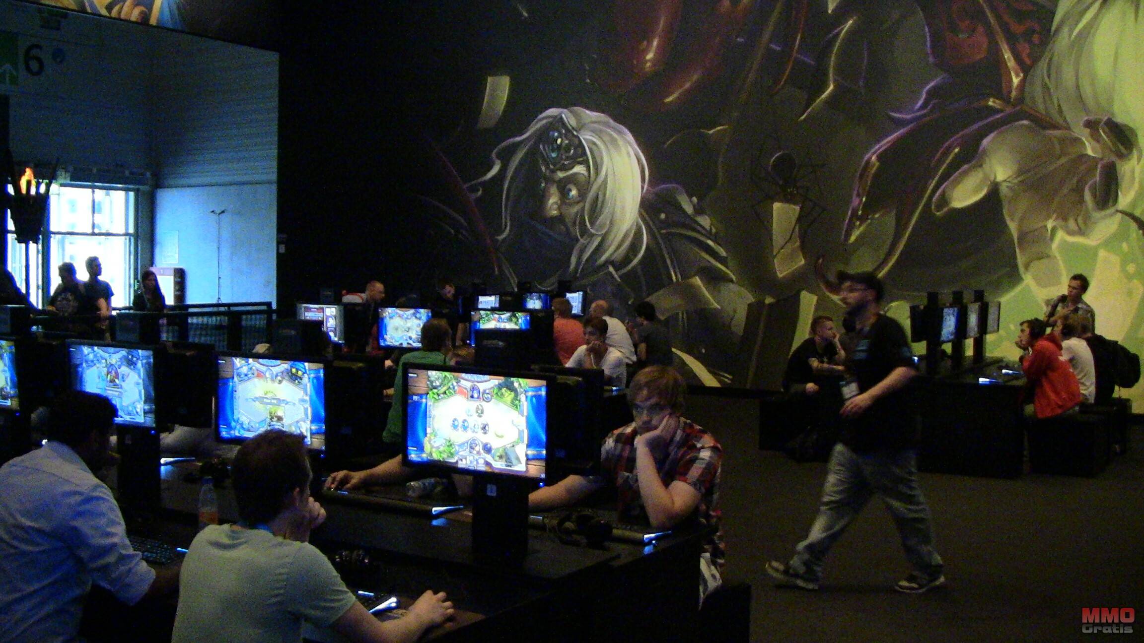 En años pasados es estas presentaciones se nos llevaba a un gran zona privada dentro de su stand (uno de los más grandes de la feria) cosa que cualquiera que haya estado en la Gamescom puede confirmar. En cambio este año la reunión se celebró en propio el stand en un área muy ruidosa y llena de gente en la que los desarrolladores, los miembros del equipo y las azafatas se movían en el bullicio creado por docenas de medios de prensa que estaban en la misma zona para probar de primera mano las novedades de Curse of Naxxramas la nueva expansión de Hearthstone.