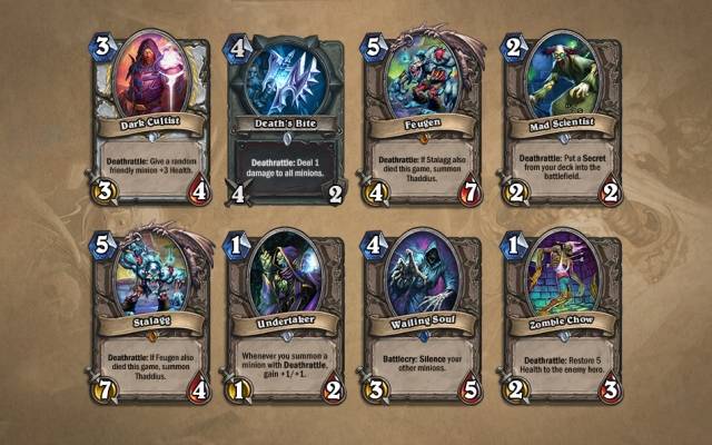 Cuando los jugadores consiguen derrotar a los jefes de estas alas también conseguirán cartas nuevas y aquellos que completen todas las alas y derroten a todos los jefes serán recompensados con cartas legendarias. Los jueves también pueden enfrentarse al Ala de las Abominaciones en modo Heroico, además de poder enfrentarse a dos nuevos desafíos de clase que sólo estarán disponibles cuando sean derrotados a todos los jefes del modo normal.