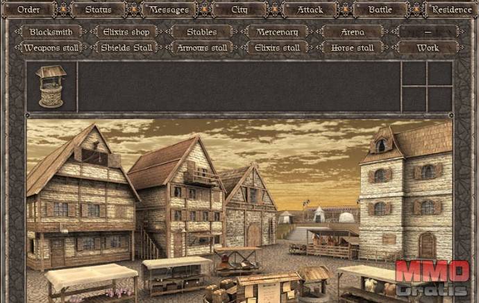 - Mercado, tiendas, mercado de mercenarios, taberna.