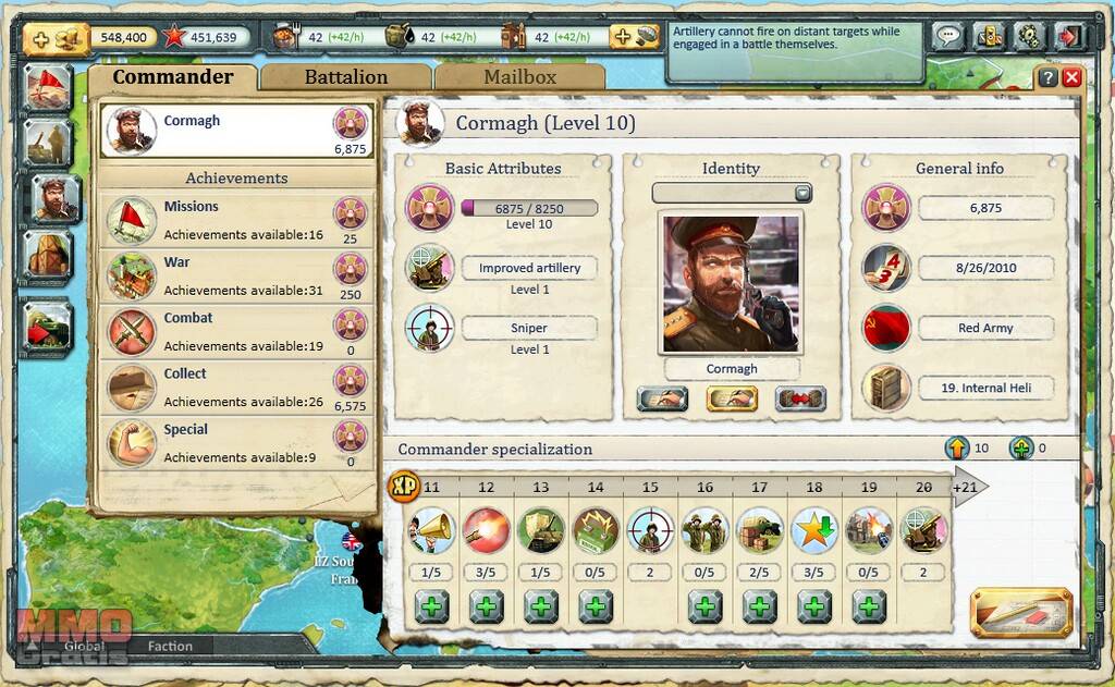 Con la actualización 2.5, el comandante tiene un papel aún más grande. Aparte de todos los logros que el comandante puede obtener, ahora es capaz de proporcionar a sus tropas potencia de fuego adicional y habilidades en las batallas.