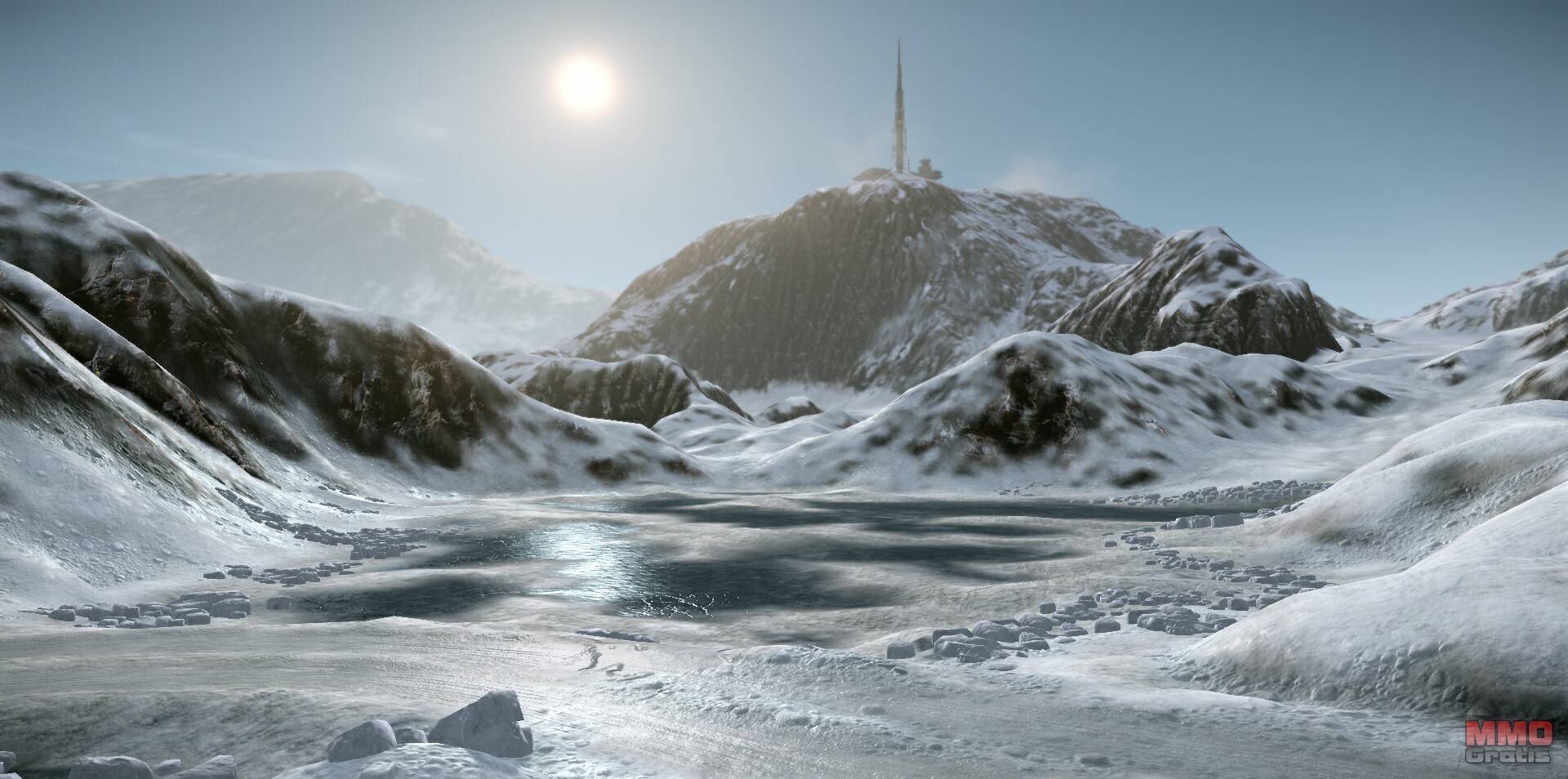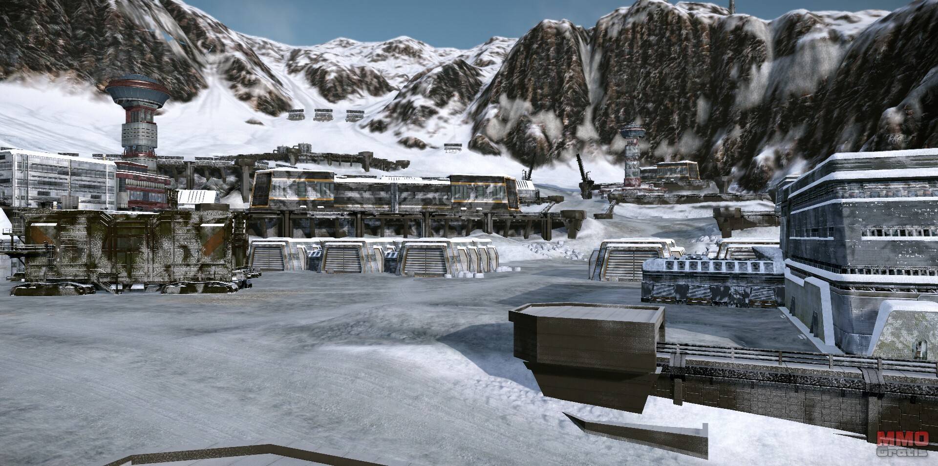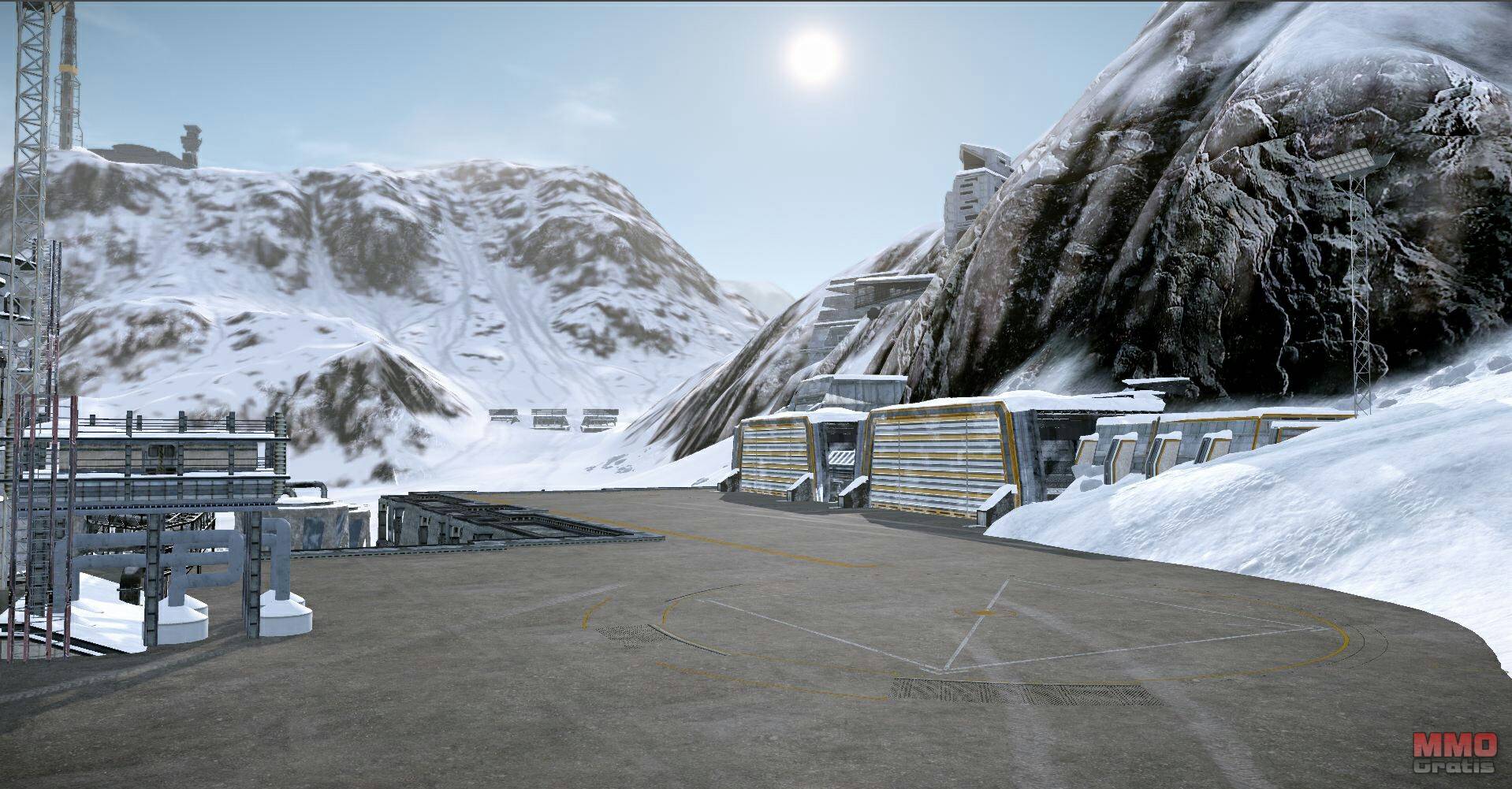 Mechwarrior Online que trae un enorme mapa que transcurre en unas montañas nevadas,