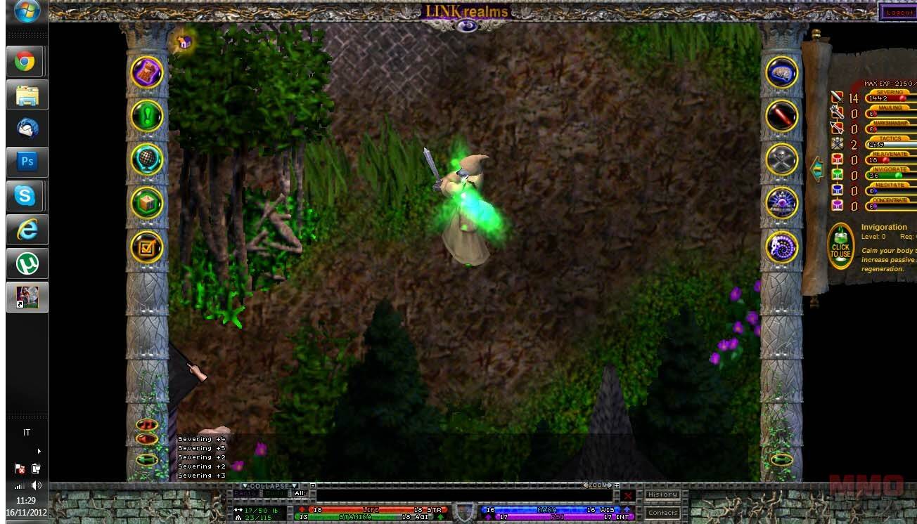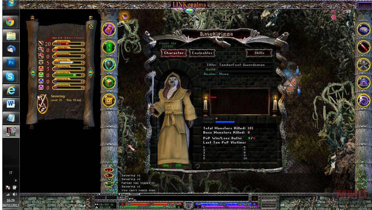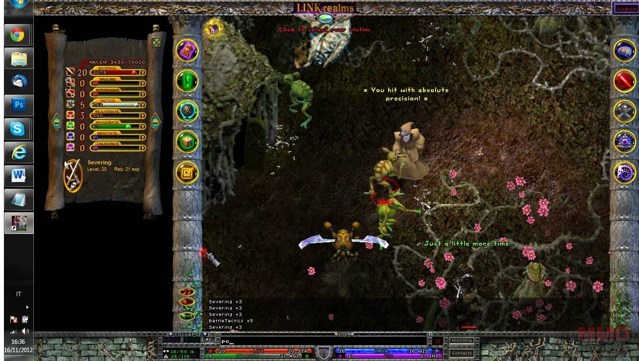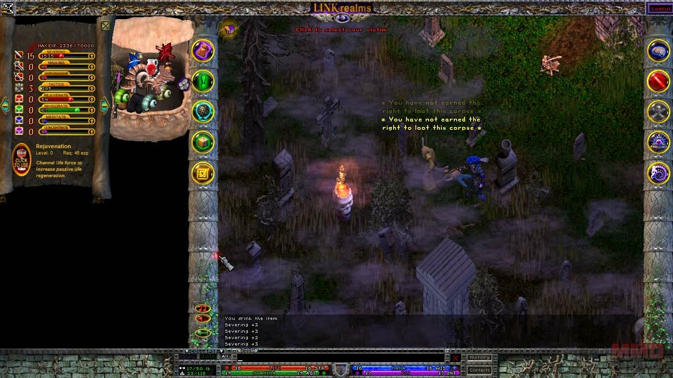 Al empezar el juego me sentí completamente perdido, ya que no cuenta con un tutorial. Además el juego funciona de un modo distinto a los MMORPG típicos. Por ejemplo para luchar tienes que entrar en el modo combate, y para usar habilidades deberas seleccionarla y la usarás en tu próximo ataque, y cómo no hay barras de acción deberás tener tus libros de habilidades siempre abiertos, y elegirlos para precargarlos para usarlos en tu próximo ataque. Recuerda abandonar el modo combate, despues de una lucha, para no matar por accidente a tu mascota o algo peor. Como no estaba acostumbrado a el juego, tuve problemas para aprender como funcionaban las cosas, pues no encontraba donde podia visualizar la ventana de personaje, o que habia habilidades para curarme. Cómo ya he dicho las mecanicas del juego lo hacen realmente distinto a los MMORPG's modernos, y su curva de aprendizaje es realmente dificil.