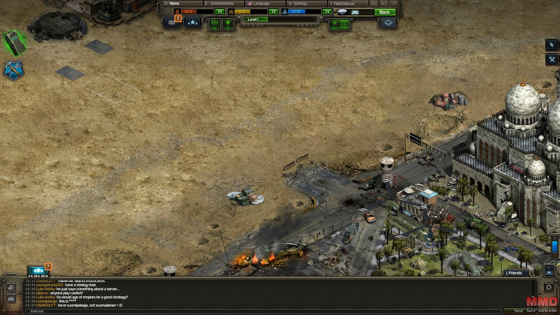 El posicionamiento de los jugadores cuando se unen a una partida está muy bien hecho, ya que a veces al entrar a partidas de juegos de este tipo comenzamos estando rodeados por jugadores de nivel alto, que tan solo esperan a que se acabe tu protección inicial para arrasar tu base. En Soldiers Inc parece que hay un círculo en constante crecimiento en cuyo perímetro se colocan los jugadores nuevos, por lo que cuanto más cerca del centro están los jugadores mayor es su nivel y más lejos están de los jugadores nuevos. El problema es que como estamos rodeados de jugadores de nivel bajo (hasta nivel 30 o hasta que pasen tres días) significa que inicialmente no hay ningún tipo de PvP, a menos que queramos enfrentarnos a jugadores más experimentados y queramos arriesgarnos a enviar nuestras tropas a viajes bastante largos.