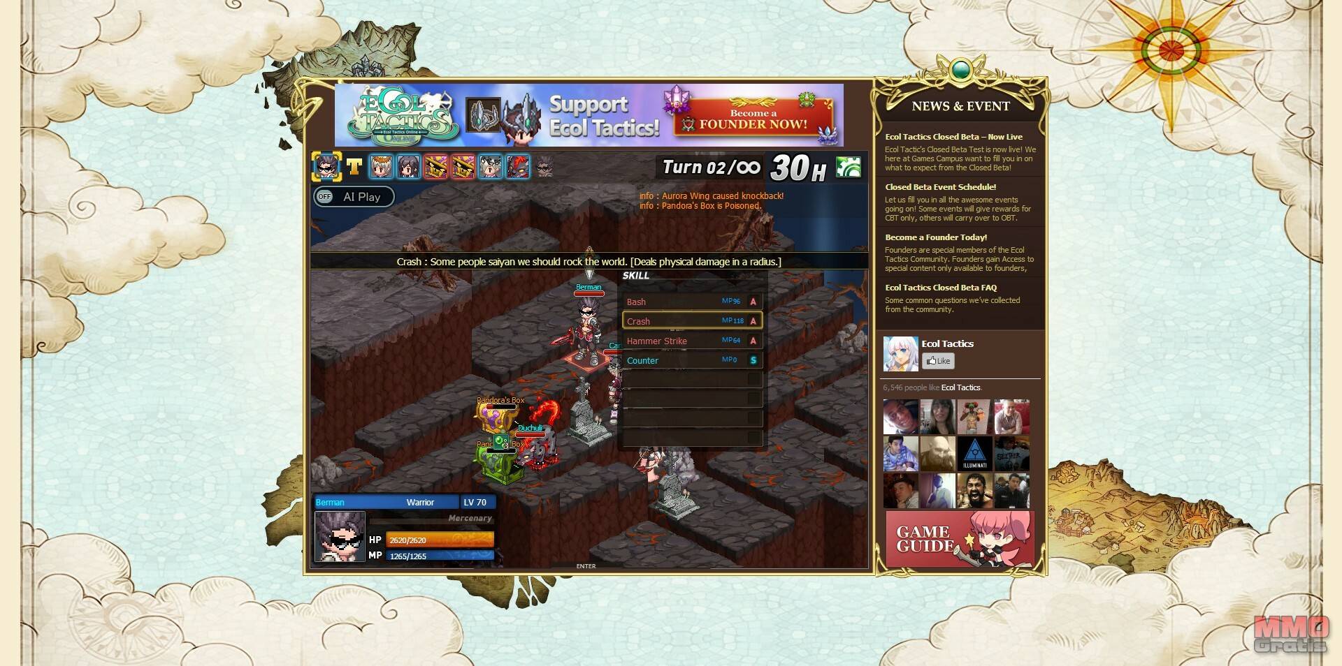 Ecol Tactics Online es un juego tactico por turnos entretenido y divertido que nos recuerda mucho a juegos como Final Fantasy Tactics. El juego puede ser jugado desde cualquier navegador, y cuenta con unos gráficos de estilo retro que encantarán a todos los fans del genero. Por otro lado el juego cuenta con el gran lastre de que para poder jugar bien es necesario gastar dinero real, ya que la contratación y la gestión de los mercenarios es algo básico para avanzar en el juego. Aún así, si no os importa gastaros un poco de dinero, podréis disfrutar de un juego que os proporcionará muchas horas de diversión!