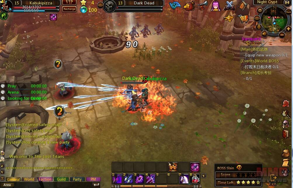 El moverse y luchar es sencillo, con el boton izquierdo del ratón te mueves, con el derecho giras la camara u usas habilidades con el teclado numerico. Nada que sea una innovación, pero agradecemos que haya habilidades que tengas que apuntar para lanzar, y que los enemigos tengan ataques que se pueden esquivar moviendose. Esto es un añadido que hace el combate mucho mas interesante y dinamico. En el juego iras despedazando hordas de monstruos que caerán a tu paso.