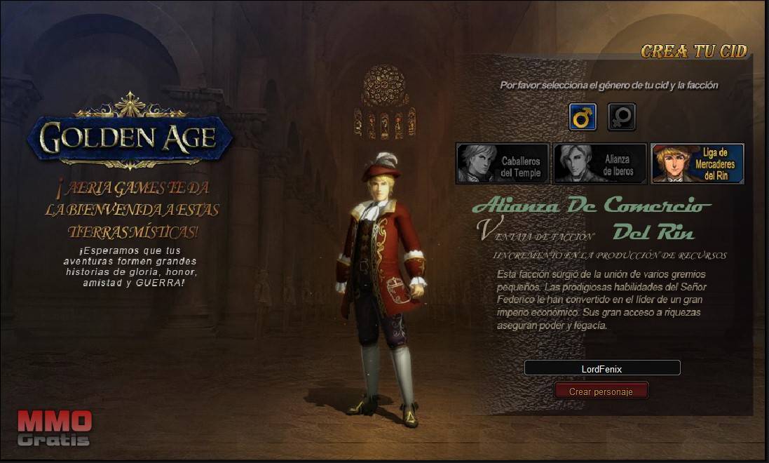Golden Age en Español presentará la misma experiencia de inmersión que su popular contraparte en inglés. En el corazón de Golden Age residen elementos profundos de juegos de rol (RPG) fusionados con la mecánica clásica de RTS. Los jugadores pueden reunirse e interactuar entre sí en la ciudad Neutral de desplazamiento lateral. Invadir castillos vecinos y expandir sus imperios. Establecer alianzas y competir por la gloria y la obtención de mayores recursos en un fascinante entorno medieval, inspirado en hechos verídicos e históricos.