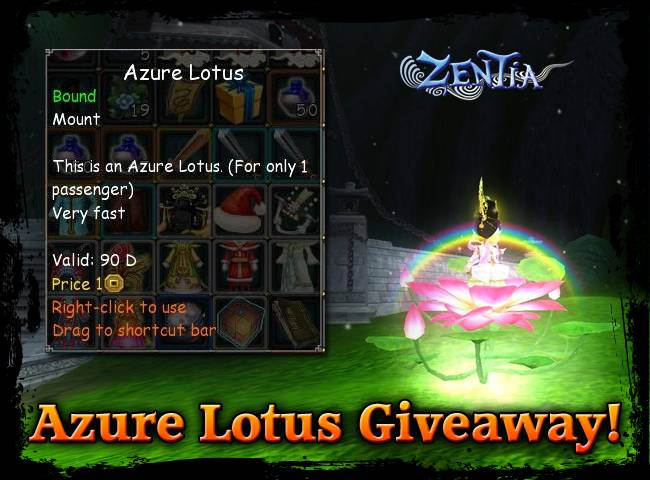Zentia junto a MMOgratis regala 2.000 códigos para una montura azure lotus, consigue tu código aqui mismo!.
